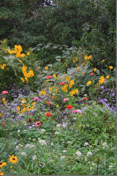 A qualche metro l’invasione dei topinambur, che non invitati si sono aggiunti alle aiuole tra le ultime zinnie, contribuisce a giustificare il nome di Giardino Selvaggio che ho voluto attribuire a questo posto capace sempre di rasserenarmi.